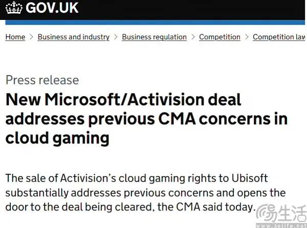 显而易见,一个月前微软将动视暴雪现有及未来15年游戏的云游戏运营权,转让给Ubisoft Entertainment SA(法国育碧)起到了决定性的作用。此前在今年春季,CMA以保护云游戏这个新兴、且令人兴奋的市场竞争至关重要,而微软在这个领域已经有着无可置疑的地位、并领先于其他竞争对手,所以收购动视暴雪将加强这一优势,使得其有能力削弱新的和具备创新能力的竞争对手为理由,反对此次收购。