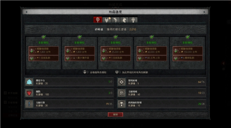 而由于莉莉丝祭坛与开地图迷雾都会给予声望,因此如果是继承进度较多的玩家,可望在一进入游戏就拿到部分的地图声望奖励,这对新角色会起到很大的帮助,因此建议大家在开赛季前可以花点时间先开原本的角色去踩踩祭坛、开开地图,这些一次性的功夫将可以永久地嘉惠到之后的每一只角色。