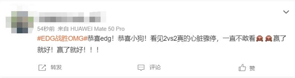 热搜!EDG鏖战五局战胜OMG 网友称“看得心脏骤停 赢了就好”