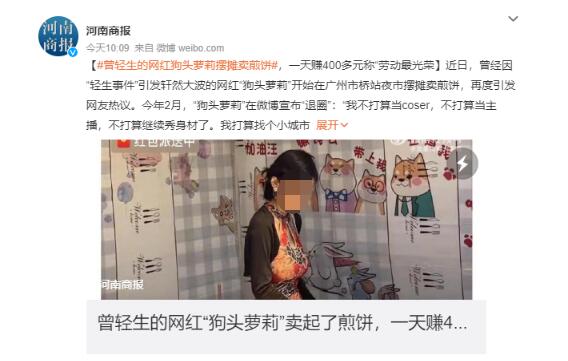 曾轻生的网红“狗头萝莉”转行卖煎饼 享受别人欣赏的快乐