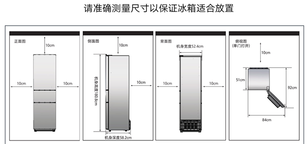 ID设计上,米家三门冰箱213L宽52.4cm、深58.2cm,高约180.8cm,占地约0.31m,采用一体成型箱体设计,不易藏污纳垢,得益于一体结构,可减少冷气外漏,更节能环保。