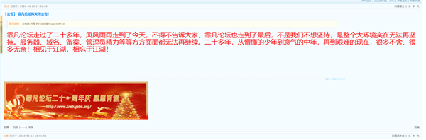 又一个时代的眼泪 运营22年的霏凡论坛宣布关闭