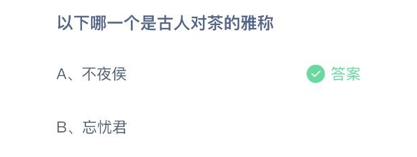 以下哪一个是古人对茶的雅称 6月28日蚂蚁庄园答案