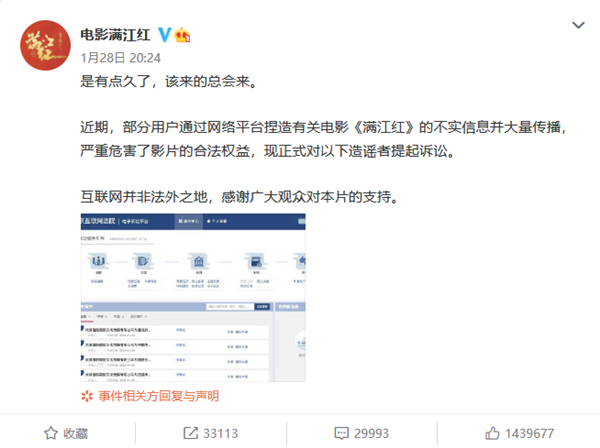 状告4位大V后 《满江红》片方称不再起诉其他造谣者:不再回应
