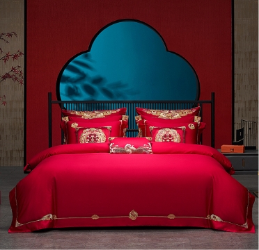除了脱胎于国画、瓷器等传统中国色系,梦洁也将“中国红”进行到底。其“中国红 梦洁红”婚庆系列床品,正是以中国红为基调,运用传统湘绣针法和缂丝工艺,从视觉设计上进一步俘获年轻消费者的芳心,尽显中式婚庆床品之大美。