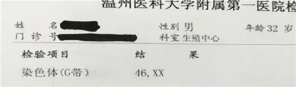 染色体结果是46,XX。从遗传学角度讲,这就意味着他”并不是男人临床上称为为性反转综合征。性反转综合征是一类性别发育异常的遗传性疾病,该病的发生机制较复杂,通常不是由单一的原因所引起。