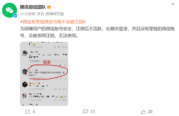 微信账号长期不用会被注销!里面有钱咋办?刚刚 官方回应了
