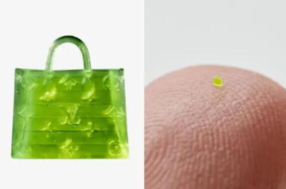 “这个包足够小,甚至可以穿过针眼,小到需要显微镜才能看到。” MSCHF表示,他们原本计划设计不同尺寸的大中小手提包,但最终决定创作最小的尺寸。该手提包是用光敏树脂制成,通过3D打印技术制造。虽然包身上带有奢侈品牌路易威登的标志,但与该品牌无关。