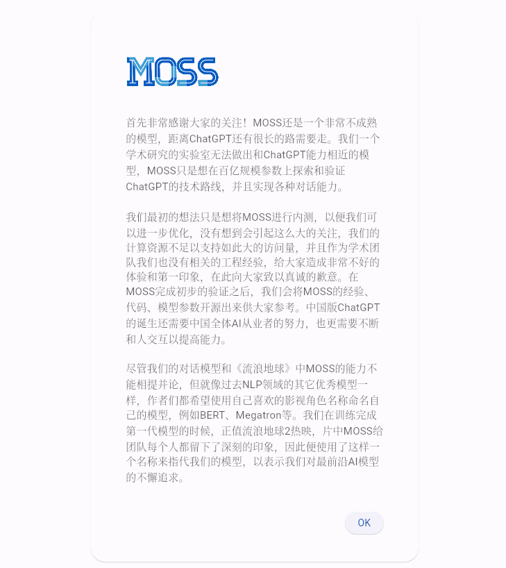 复旦MOSS团队回应内测 因中文广告太多致水平不够高