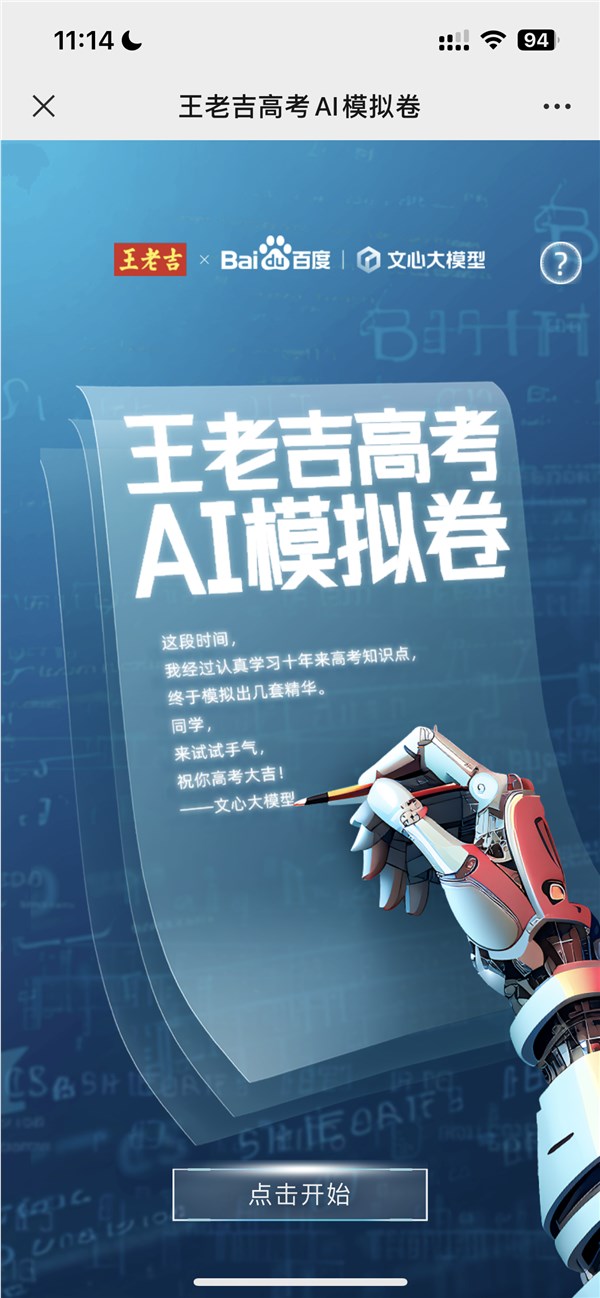 在2023年高考来临之际,王老吉联合百度运用文心大模型能力,推出高考AI模拟卷”,这应该也是史上首套用AI模拟的高考卷。