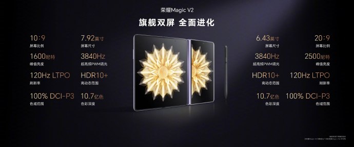 荣耀MagicV2正式发布:四款配色 内外高刷