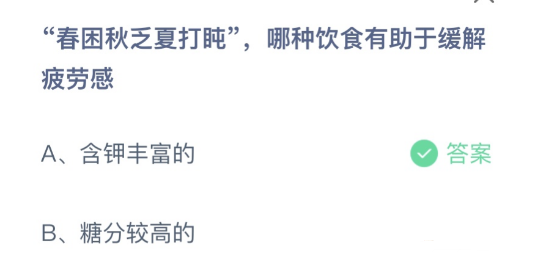 2023年5月11日,支付宝的蚂蚁庄园小课堂的问题是关于春困秋乏夏打盹的,问题是“春困秋乏夏打盹哪种饮食有助于缓解疲劳感?”这个自然是含钾丰富的了,下面就来为大家分享一下蚂蚁庄园最新答案。