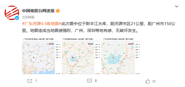 广东河源4.5级地震:广州深圳震感明显 小米手机提前收到预警