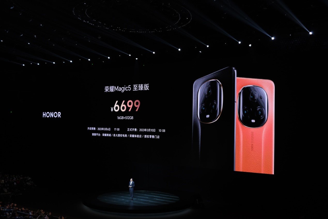 凤凰网科技讯(作者/贾楠) 3月6日消息,荣耀于今日举办荣耀Magic5系列的国内发布会,发布包括荣耀Magic5、Magic5 Pro以及Magic5 至臻版在内的多款产品,并公布该系列的国内售价。其中荣耀Magic5 至臻版使用了荣耀青海湖电池,并搭载第二代骁龙8,售价6699元。