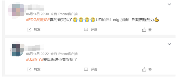 比赛结束后,Uzi微博发文回到赛场的感觉真好啊兄弟们”,网友表示:能看到你打比赛真好啊”欢迎神回归,EDG加油,圆梦S13,乌兹永远滴神”赛后采访也看哭我了”。