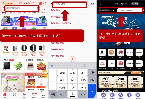 京东手机小时达是由收货地址附近品牌官方授权门店发货,同城配送,不仅有正品保障,还能让消费者获得 1 小时上手新手机的优质体验。消费者在京东APP首页搜索“手机小时达”即可进入页面,不仅可领取iPhone优惠券,在不同的店铺选购时还可以领取店铺优惠券,让消费者能够同时享受极速配送和低价优惠。值得注意的是,如果所在位置不是收货地址,记得先修改定位至收货地址,然后再在搜索框内搜索自己想要购买的手机,选择有货的门店下单。此外,消费者在京东搜索想要购买的手机时,可以选择带有小时达标志的产品,或者选择右上方“小时达”进入小时达栏目,都可以在下单后享受 1 小时送达的体验。