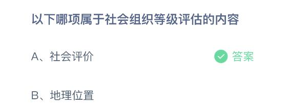 以下哪项属于社会组织等级评估的内容 6.15蚂蚁庄园今日答案