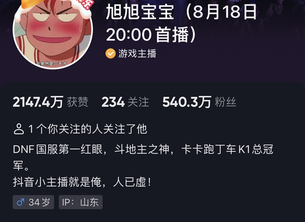 与斗鱼解约!“《DNF》一哥”知名游戏主播旭旭宝宝今晚抖音首播