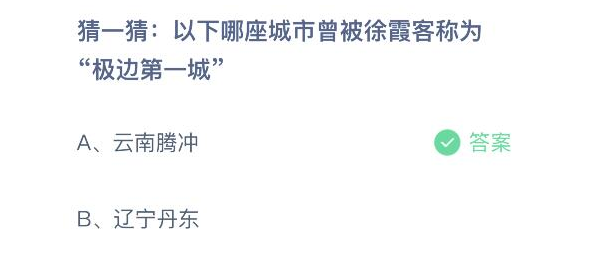以下哪座城市被徐霞客称为极边城 5.19蚂蚁庄园今日答案
