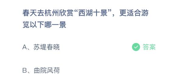 春天去杭州欣赏西湖十景适合游览哪一景 3月16日蚂蚁庄园答案
