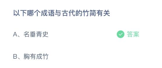 以下哪个成语与古代的竹简有关 2月22日蚂蚁庄园最新答案