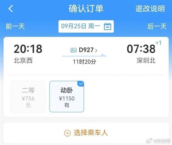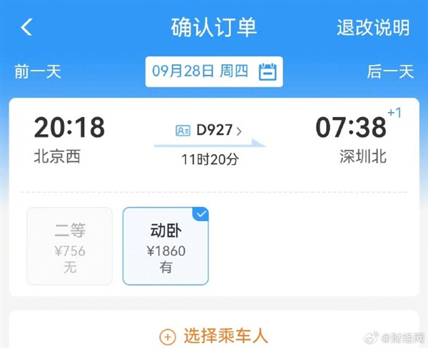 这个涨价幅度有多明显呢,作为对比,以北京到深圳的D927卧铺为例: