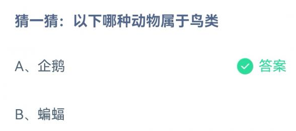 猜一猜以下哪种动物属于鸟类 2月6日蚂蚁庄园最新答案