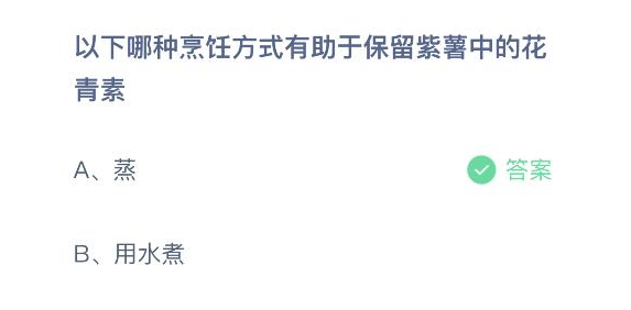 以下哪种烹饪方式有助于保留紫薯中的花青素 3.24蚂蚁庄园今日答案