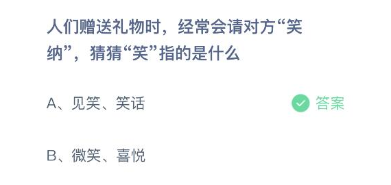 人们赠礼时会请对方笑纳的笑指的是什么 8月22日蚂蚁庄园今日答案
