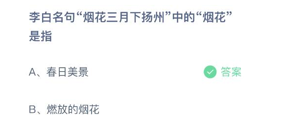 李白名句烟花三月下扬州中的烟花是指什么 3月9日蚂蚁庄园今日答案