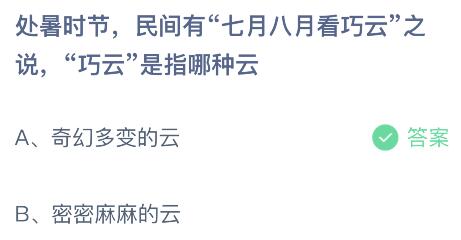 处暑时节七月八月看巧云的巧云是指哪种云 8.23蚂蚁庄园答案