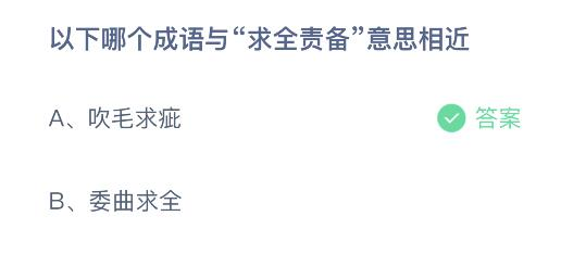 以下哪个成语与求全责备意思相近 5月23日蚂蚁庄园今日答案