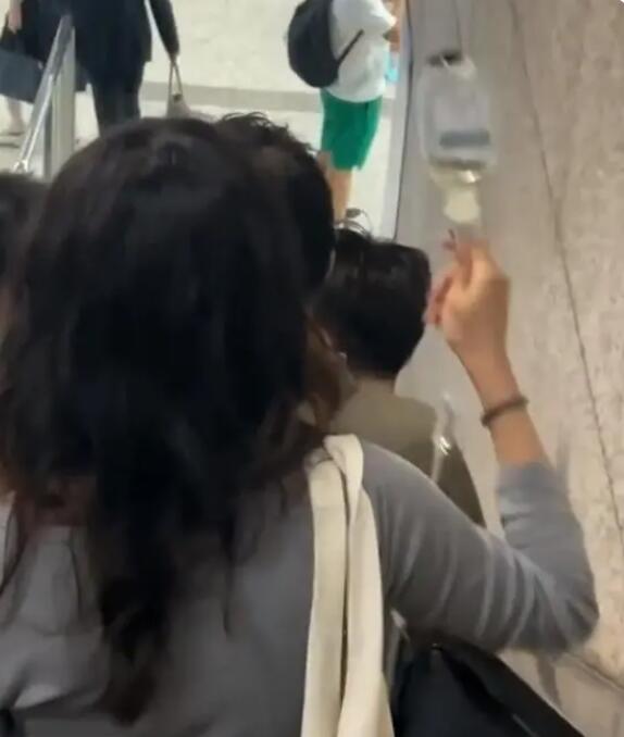 5月28日,一名女子在上海地铁站内右肩挎着包,高举着吊瓶,吊瓶内还剩下一半的药液,这一画面被网友拍摄并上传至网络,引起了广泛关注。