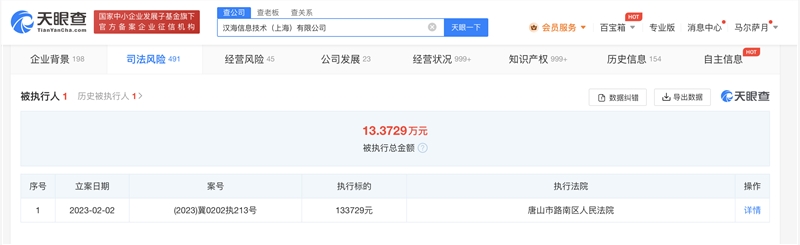 凤凰网科技讯 2月3日消息,据天眼查App显示,近日,2月2日,大众点评关联公司汉海信息技术(上海)有限公司新增被执行人信息。