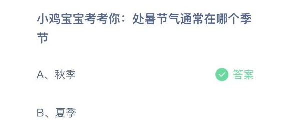 今天问题:小鸡宝宝考考你:处暑节气通常在哪个季节?