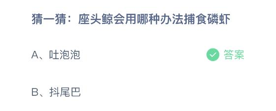 2023年4月11日,支付宝的蚂蚁庄园小课堂的问题是关于座头鲸的,问题是“座头鲸会用哪种办法捕食磷虾?”这个自然是吐泡泡了,下面就来为大家分享一下蚂蚁庄园最新答案。