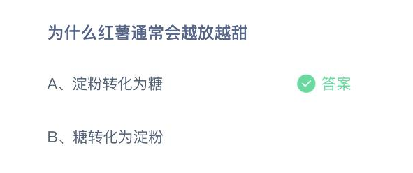 为什么红薯通常会越放越甜 2月15日蚂蚁庄园最新答案