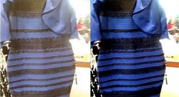 2015年2月,来自英国苏格兰的基尔约翰斯顿(Keir Johnston)拍下了这张照片并发到网上,声称是岳母穿着的这条裙子参加自己和妻子格蕾丝的婚礼,许多宾客对这条裙子到底是什么颜色产生了激烈争论,有的说是蓝黑色,有的说是白金色。