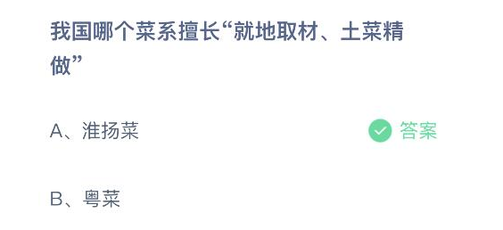 我国哪个菜系擅长就地取材土菜精做 4月14日蚂蚁庄园答案