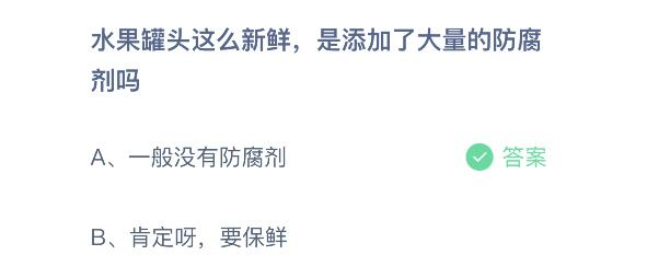 水果罐头这么新鲜是添加了大量的防腐剂吗 1月11日蚂蚁庄园答案