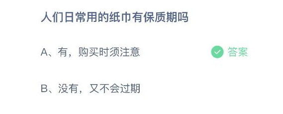 人们日常用的纸巾有保质期吗 1月10日蚂蚁庄园今日答案