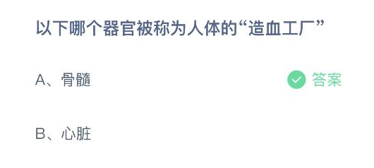 以下哪个器官被称为人体的造血工厂 4.27蚂蚁庄园今日答案