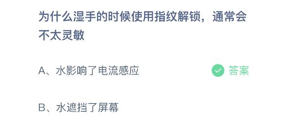 为什么湿手的时候使用指纹解锁不太灵敏 3.30蚂蚁庄园答案
