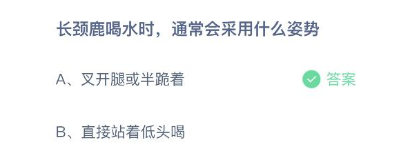 长颈鹿喝水时通常会采用什么姿势 5月17日蚂蚁庄园今日答案